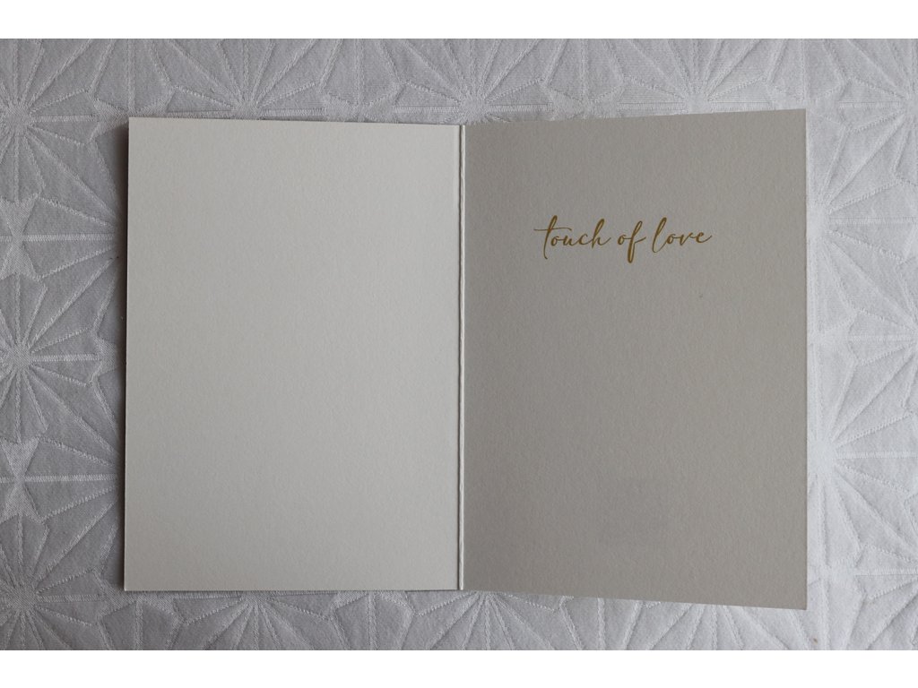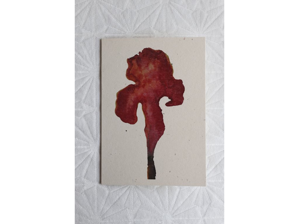 Otevírací papírové přání s autorským akvarelem kosatce, v červených tónech. Tištěno na eko papíru s jemnou texturou. Uvnitř zlatý nápis Touch of love.