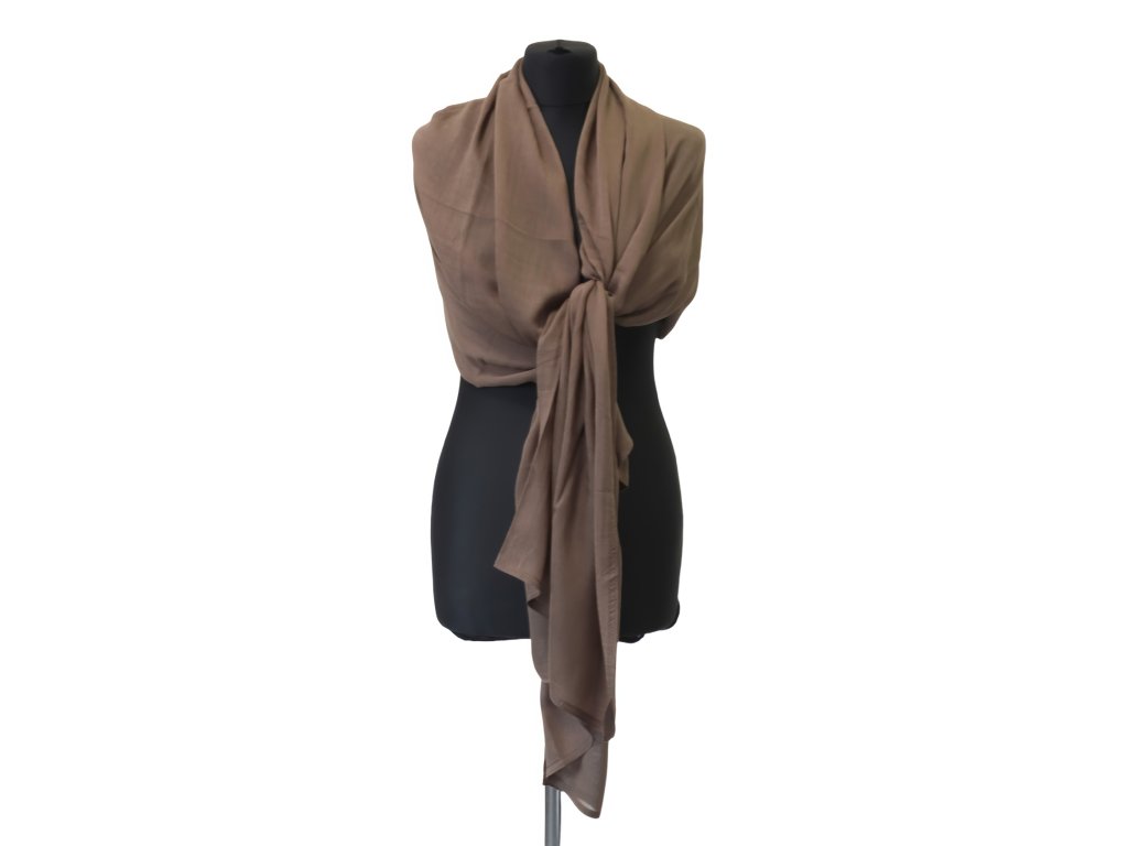Lehký a vzdušný šál v univerzální hnědé barvě je ideálním doplňkem pro každodenní nošení i speciální příležitosti. Díky jemnému materiálu působí elegantně a příjemně se nosí. Lze jej kombinovat s kabátem, šaty nebo ležérním outfitem a vždy dodá vašemu vzhledu sofistikovaný nádech.