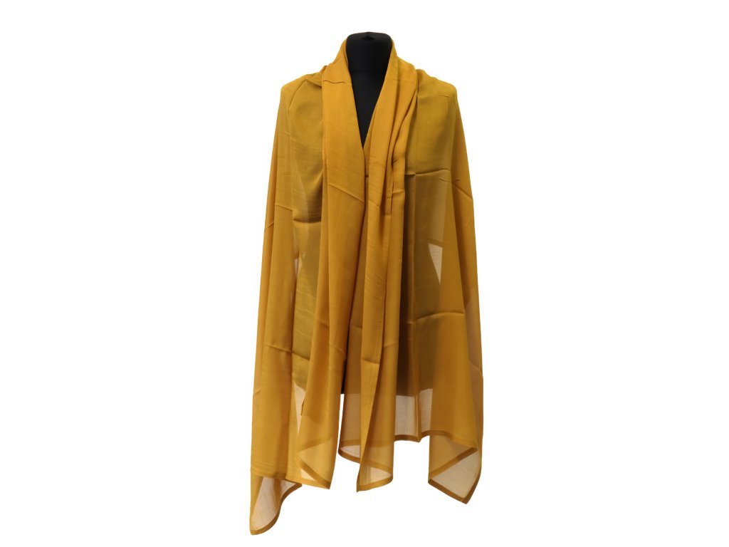 Oživte svůj outfit výrazným šálem v módní hořčicově žluté barvě. Lehký a příjemně splývavý materiál se skvěle hodí jak k dennímu nošení, tak i k elegantním příležitostem. Díky své univerzální velikosti jej můžete nosit jako šátek kolem krku, přehozený přes ramena nebo jako stylový doplněk k šatům.