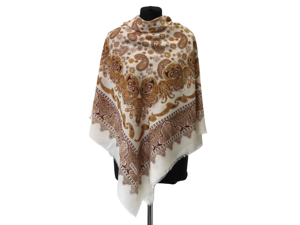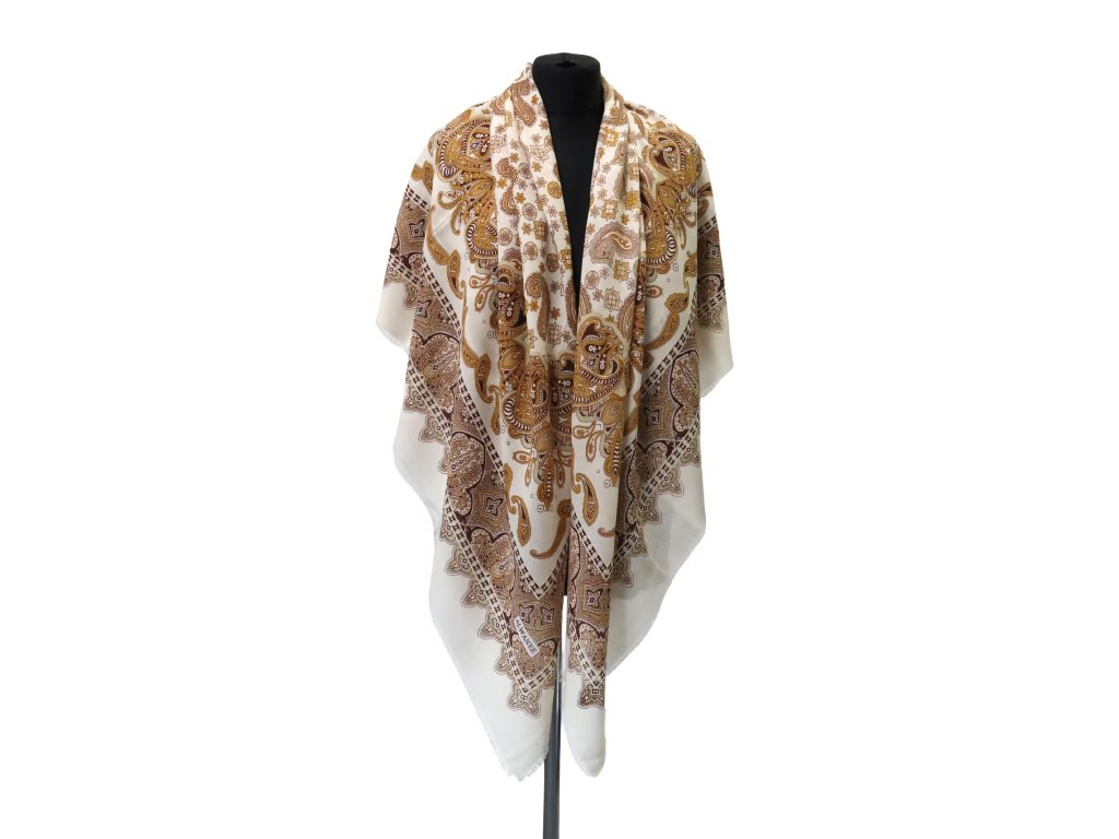 Velký dámský šátek přes ramena s jemným ornamentálním arabeskovým paisley vzorem.
