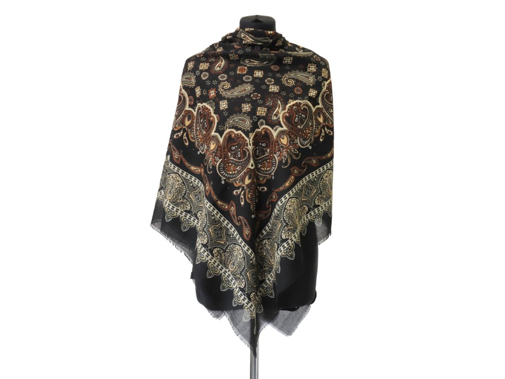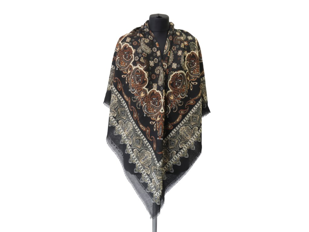 Velký dámský šátek přes ramena s ornamentálním arabeskovým paisley vzorem.